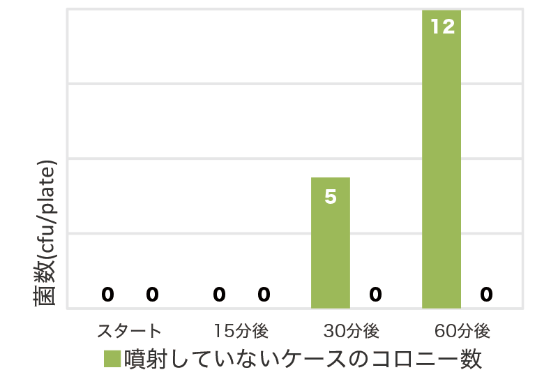 5push/㎥のきめつ水を噴霧した場合、空中落下菌は検出されなかった。